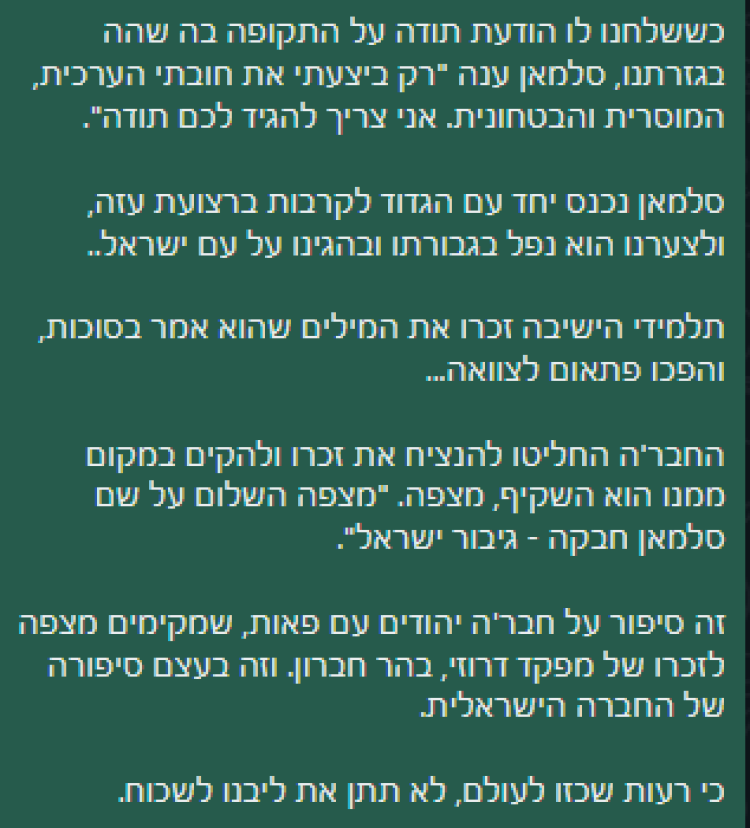 אמו של אורון שאול, החיילים הצדיקים שהשאילו בקבוק יין לקידוש, חייל מוסלמי וחייל יהודי, הכנסת ספר תורה למיה שם ועוד