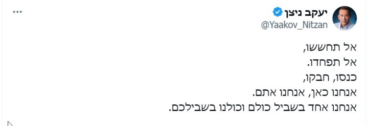 יעקב ניצן, אביו של לוחם צה"ל גלעד נחמיה ניצן הי"ד שנפל בקרב בתחילת המלחמה בצפון רצועת עזה, בפוסט מרגש לקראת החגים: "אל תחששו, אל תפחדו. כנסו, חבקו"
