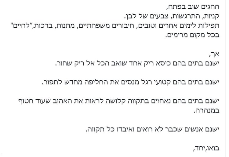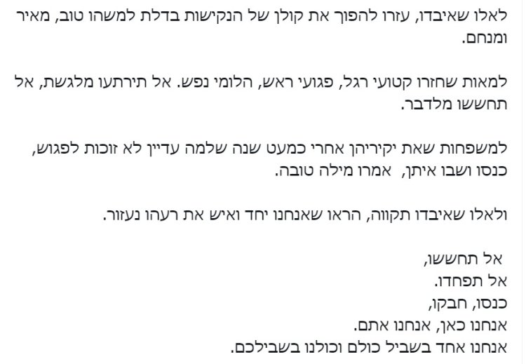 הפוסט היומי: "לאלו שאיבדו - עזרו להפוך את קולן של הנקישות בדלת למשהו מנחם"