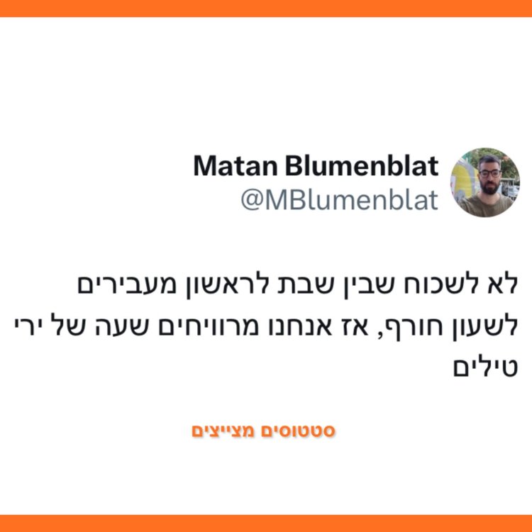 אשתו של סינוואר ותיק היוקרה, הלוחם שחיסל את סינוואר בתגובה ראשונה, מה מרוויחים בחילופי השעות לשעון חורף, המנותקים מתל אביב ועוד: מקבץ הומור