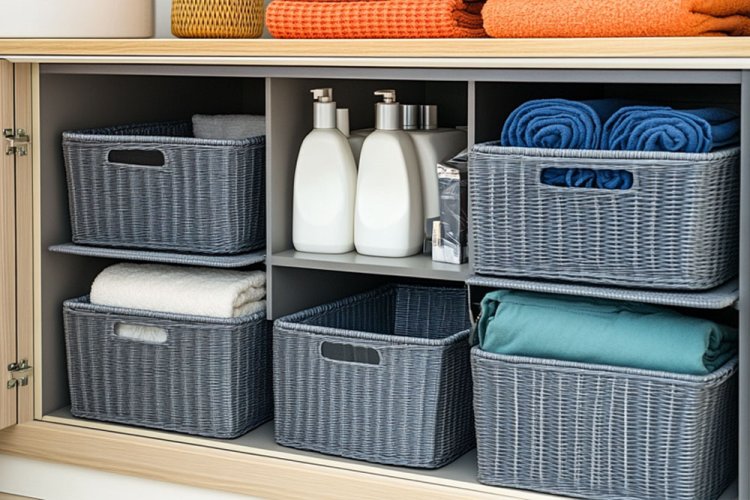 - קופסאות פלסטיק או סלסלות: השתמשו בקופסאות קטנות או בסלסלות לארגון חומרי הניקוי. כך תוכלו להוציא את כל התכולה בבת אחת ולמצוא בקלות את מה שאתם מחפשים. העדיפו לרכוש קופסאות שנערמות זו על זו ויש להן פתח קדמי לשליפת חפצים.