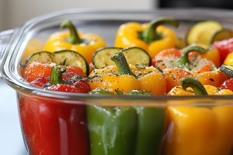 - מלאי את הפלפלים בתערובת הגבינה והקישואים, וסגרי עם ה"מכסה" שחתכת קודם.