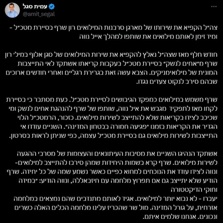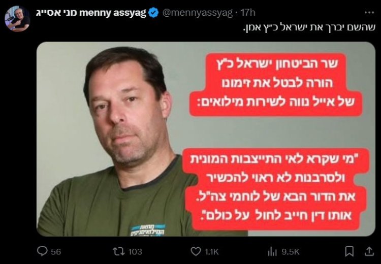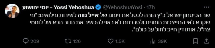 שר הביטחון ישראל כ"ץ ביטל את שירות המילואים של אייל נווה מ'אחים לנשק', והרשת סוערת בשלל תגובות על כך