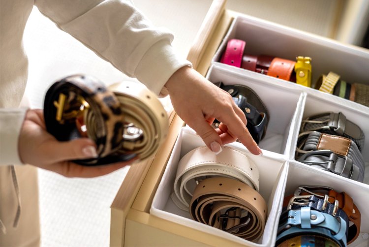 גלגלו חגורות בצורת גליל והניחו אותן במגירה קטנה או קופסה.