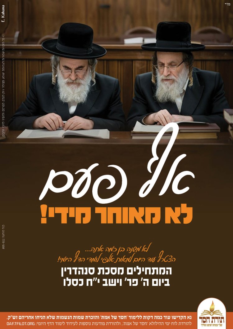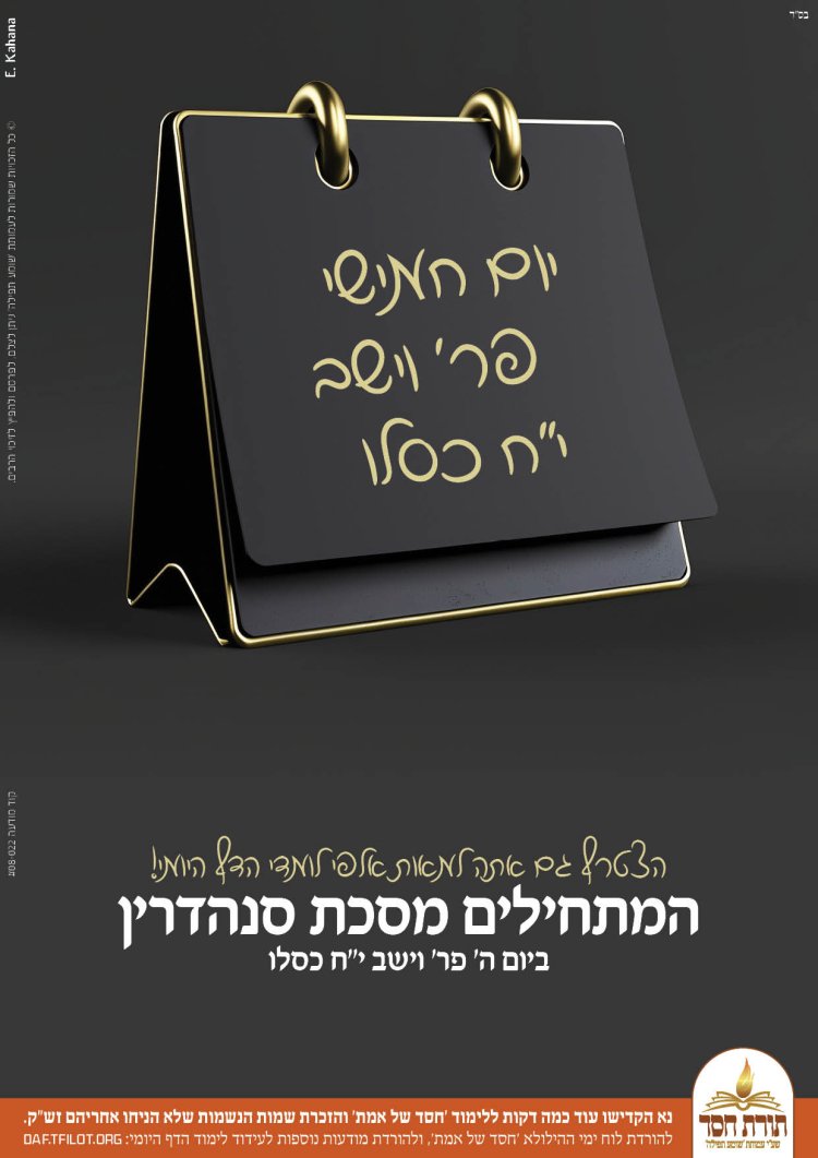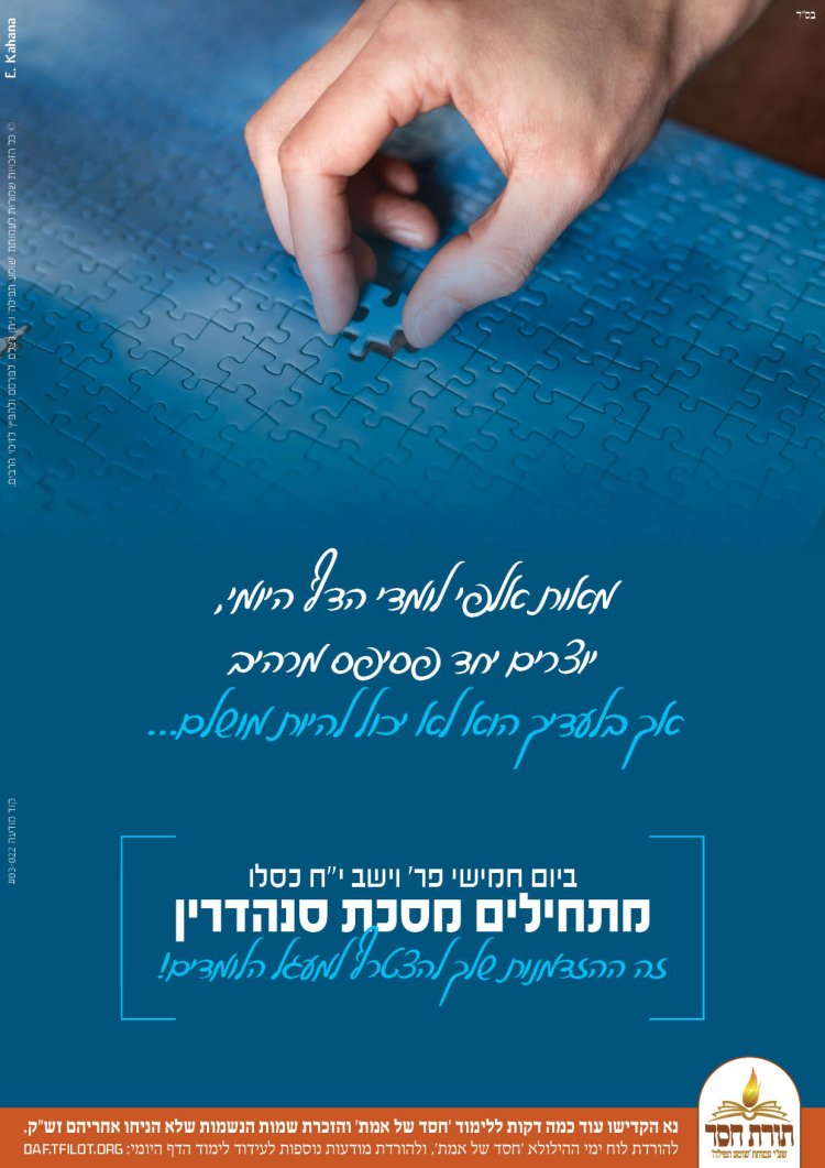 ביום חמישי י"ח כסלו מתחילים מאות אלפי יהודים ללמוד את מסכת סנהדרין במסגרת לימוד הדף היומי. הצטרפו אלינו ללימוד המסכת ותזכו גם אתם לסיים אותה בהצלחה