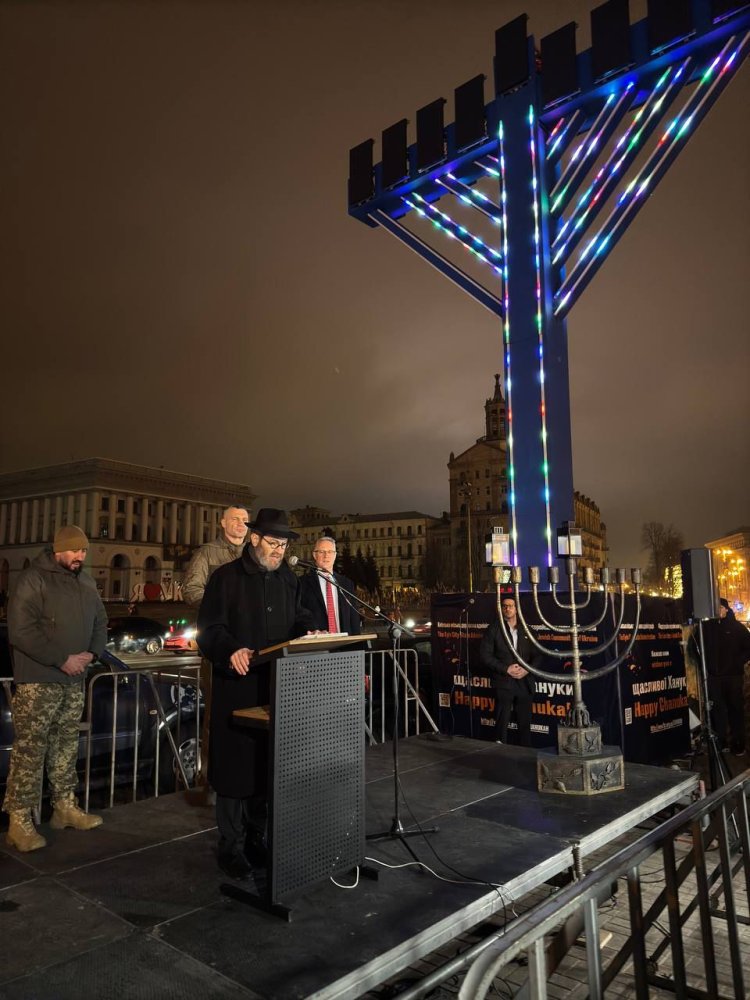 הרב מאיר סטמבלר, יו"ר הקהילות היהודיות באוקראינה, העביר את מסר הרבי מליובאוויטש מחג החנוכה, והדגיש את ניצחון האור על החושך ואת האחריות של כל אחד להאיר את החושך, במיוחד בזמנים קשים אלו. הוא גם הביע תקווה כי מגאולת חנוכה תבוא הגאולה השלמה והאמיתית.