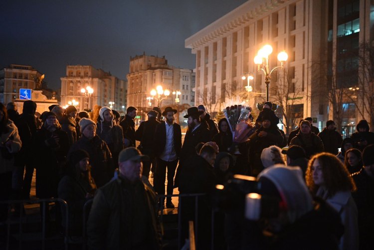 צילומים: לשכת הנשיא זלנסקיבצל מתקפה רוסית קשה ושיגור מאות טילים וכטב"מים לעבר ערי אוקראינה, התכנסו הנשיא ולדימיר זלנסקי, רבני המדינה ושליחי חב"ד בבונקר הנשיאותי בקייב להדלקת נר ראשון של חנוכה. האירוע, שאורגן על ידי "פדרציית הקהילות היהודיות באוקראינה" (FJCU), התקיים במתכונת מצומצמת בשל המצב הביטחוני המתוח.