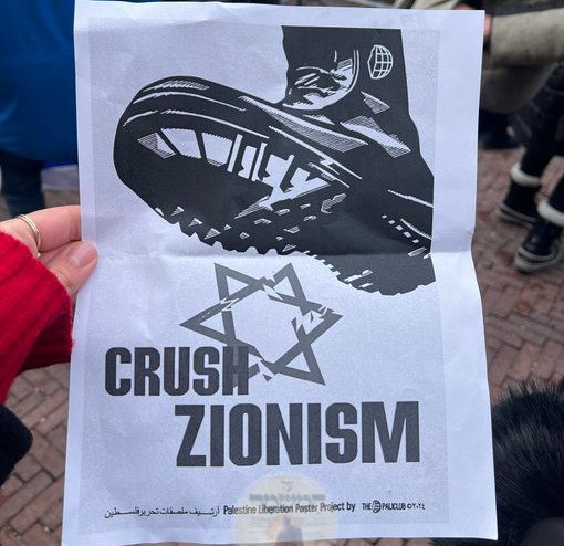 הסטודנטים תומכי הטרור חילקו פליירים ועלונים עם הכיתוב "לשרוף את הציונות עד הייסוד", על רקע צילום של מגף מועך מגן דוד. צוותי אבטחה הרחיקו אותם מהמקום.