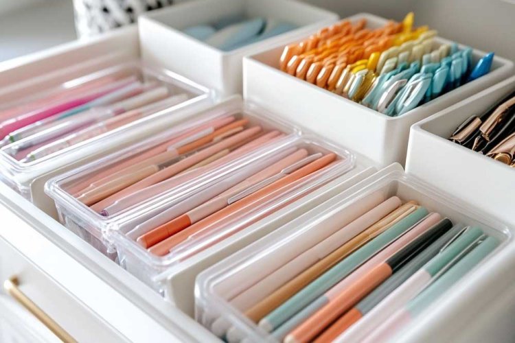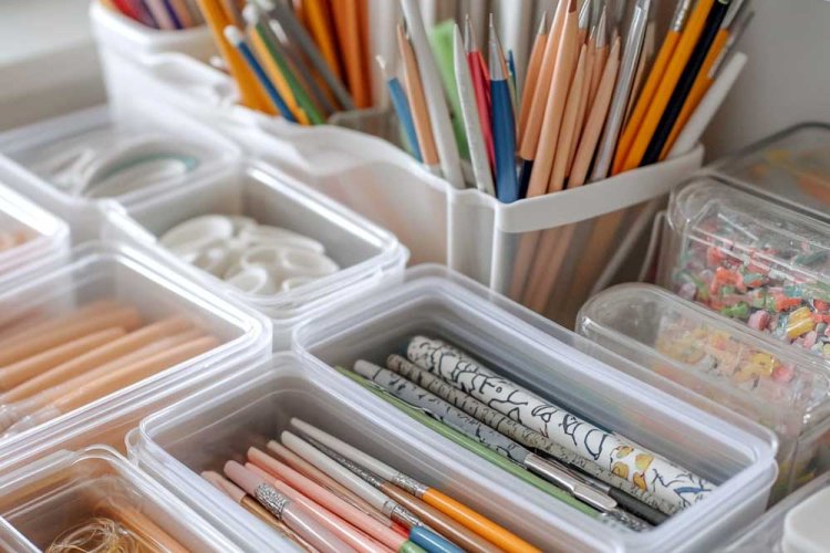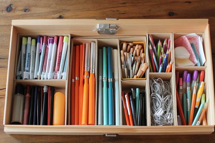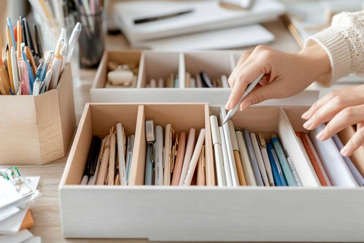 תיבת ארגון: השתמשו בתיבות או קופסאות לארגון חפצים קטנים כמו עט, פתקיות דבק, מספריים ועוד. ארגון זה שומר על סדר ויעילות.