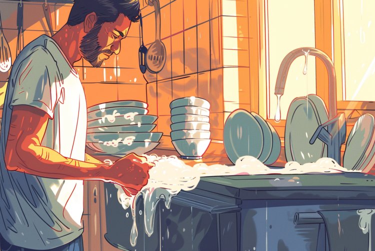 8. מתחילים לשטוף כלים ואז משאירים אותם "לסיים אחר כך"