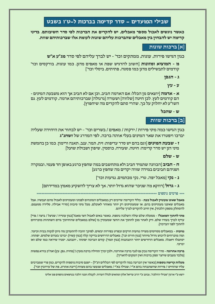 לפנינו מונחים מאכלים שמברכים עליהם ברכות שונות - על איזה מאכל מברכים קודם? מה עושים כאשר יש מספר מאכלים שעליהם מברכים את אותה ברכה? הרב עדיאל אלון מסביר את הנושא בשפה ברורה ומועילה