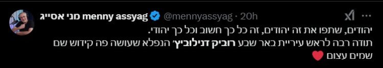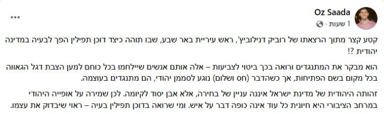לאחר שתועד כשהוא מעודד הנחת תפילין בבתי ספר ("אנחנו מדינה יהודית, ממתי מחביאים תפילין?") הרשת מצדיעה לראש עיריית באר שבע רוביק דנילוביץ' על קידוש השם שעשה