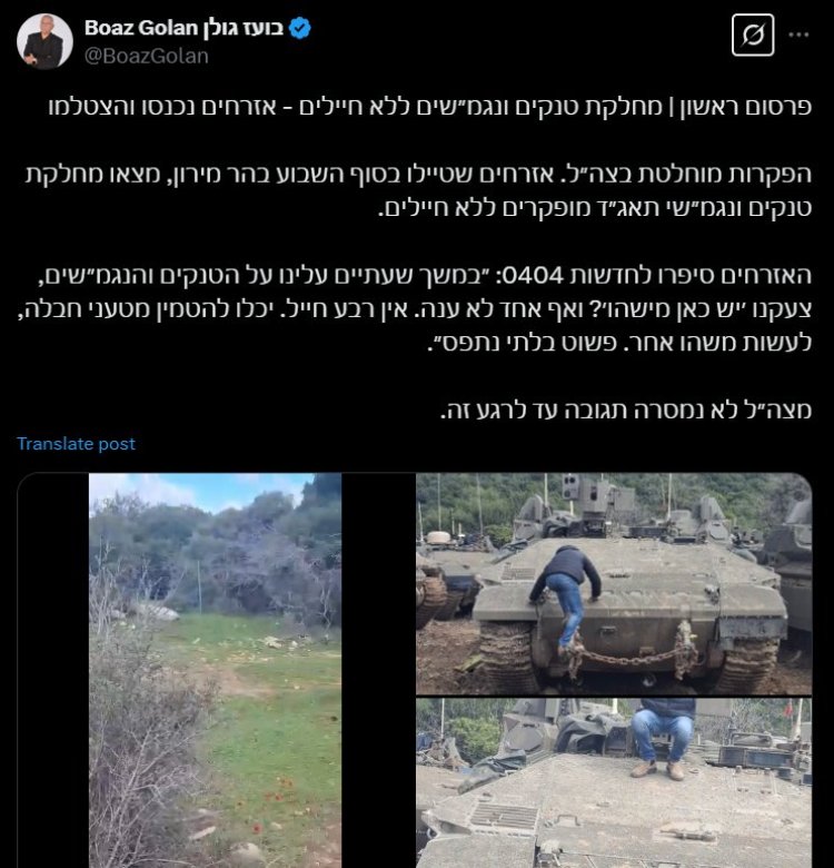 בועז גולן בפוסט שלא יותיר אתכם אדישים: איך קורה שאזרחים מצליחים להיכנס אל תוך טנקים ולהצטלם מבלי שאיש יפצה פה וימנע בעדם?