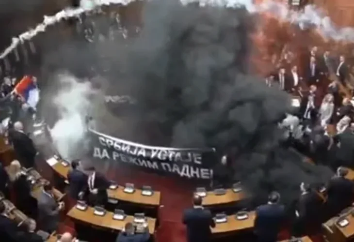 הזוי: האופוזיציה בסרביה פוצצה דיון עם רימוני עשן