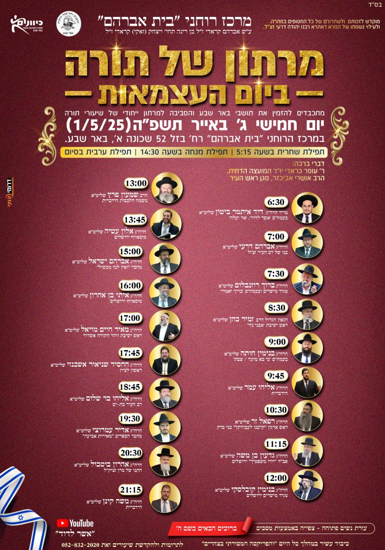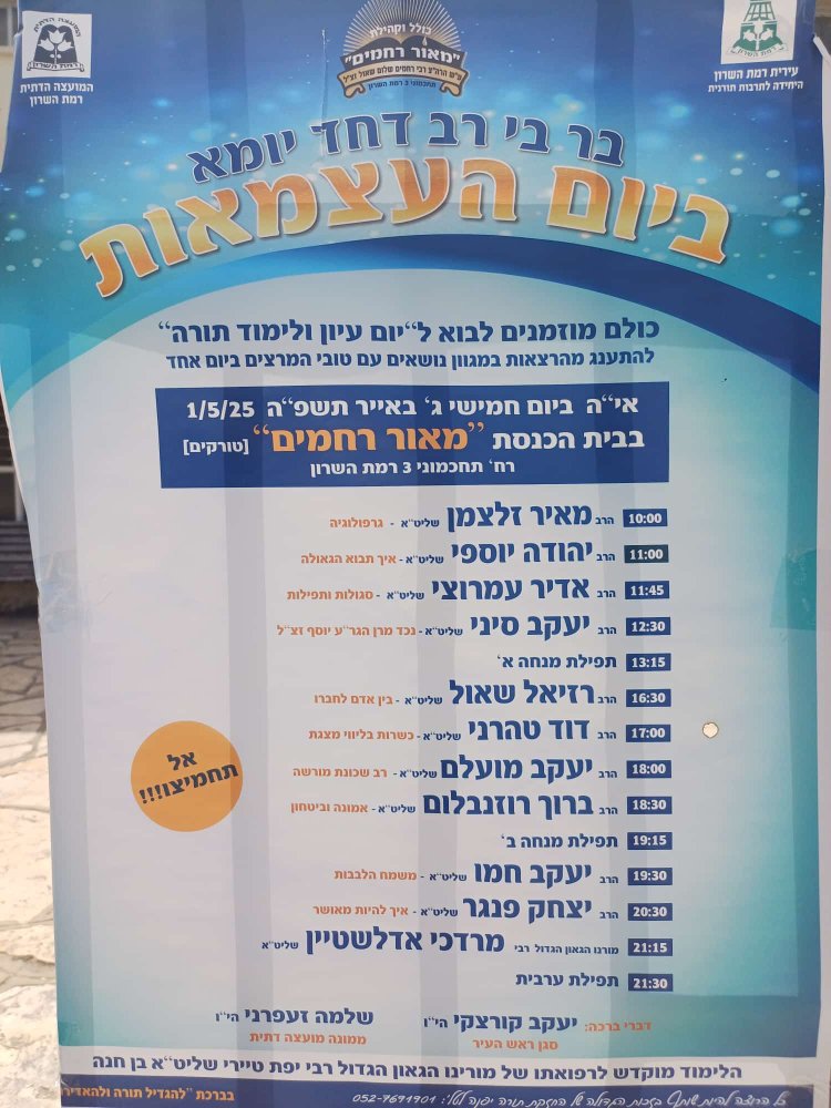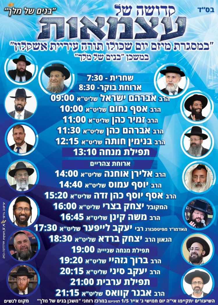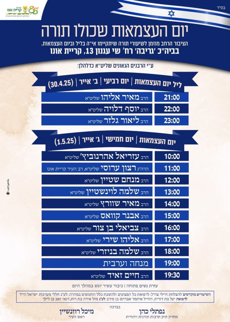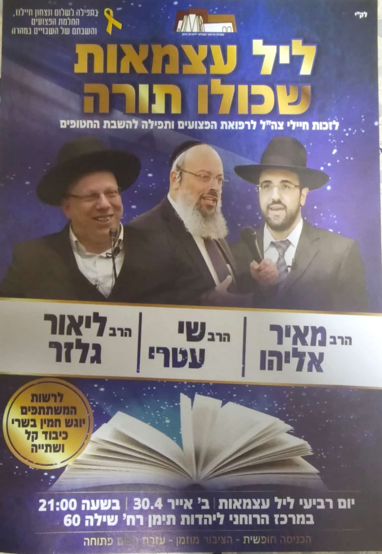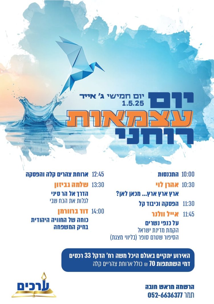 מה אתם מתכננים לעשות ביום העצמאות? יש העסוקים במנגלים, אולם בשנים האחרונות רבים מעדיפים לנצל את יום החופש ליום שכולו תורה, ומאמצים כל רגע שבו ללימוד מחזק ומעשיר.