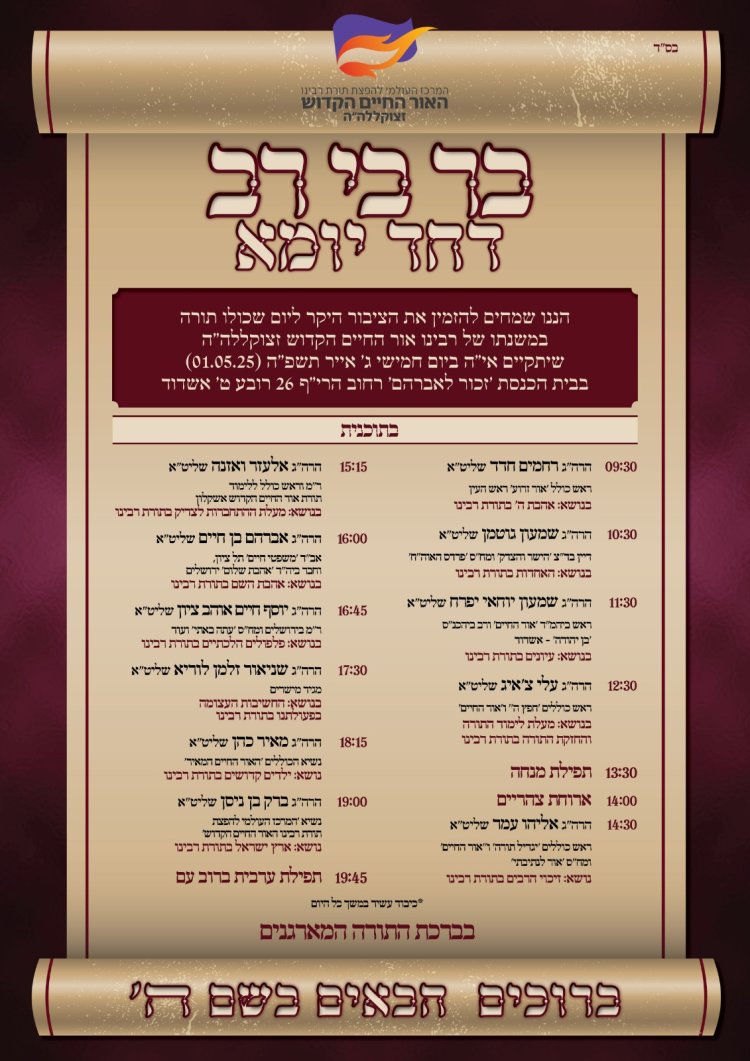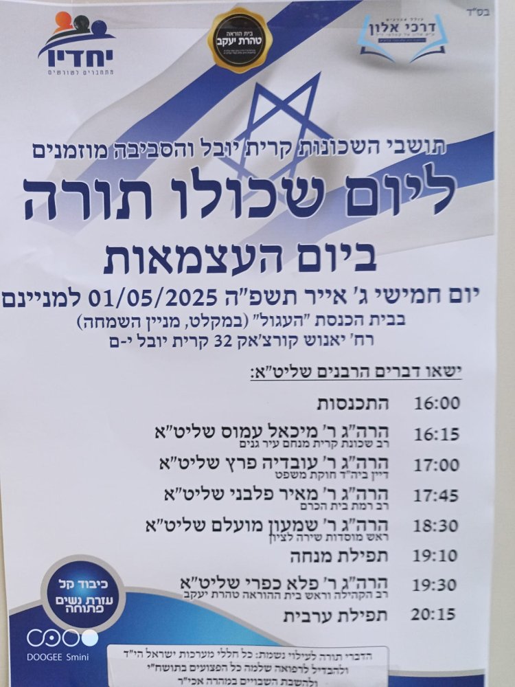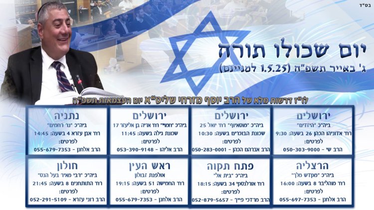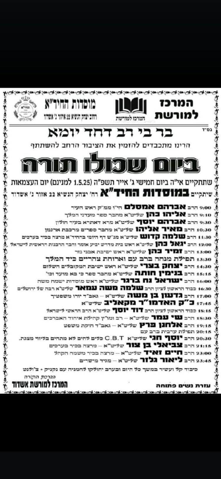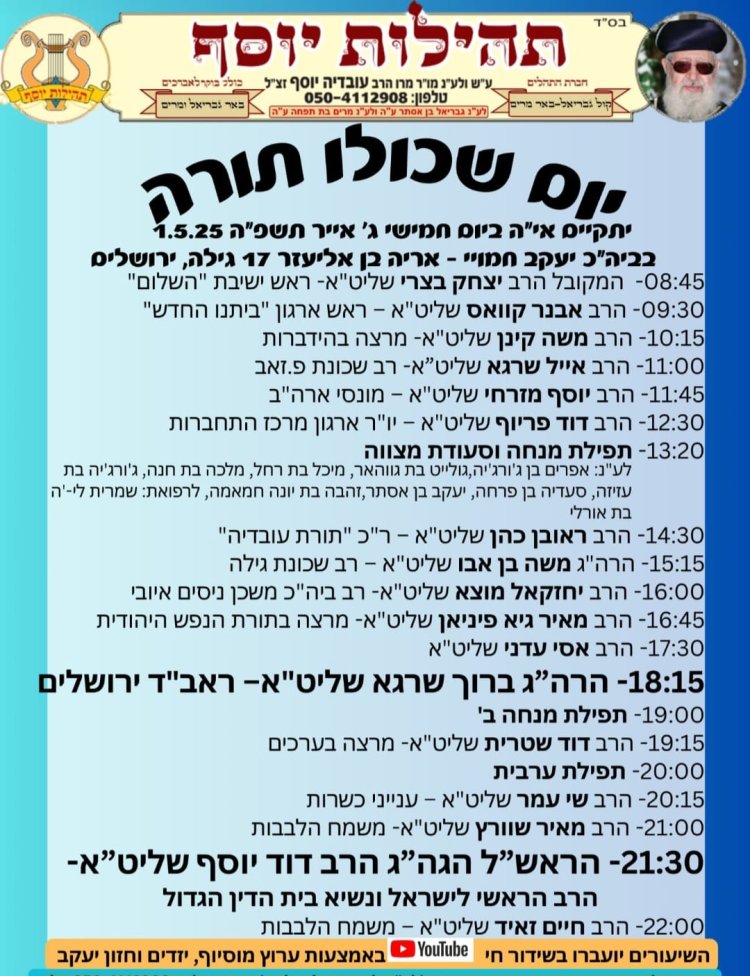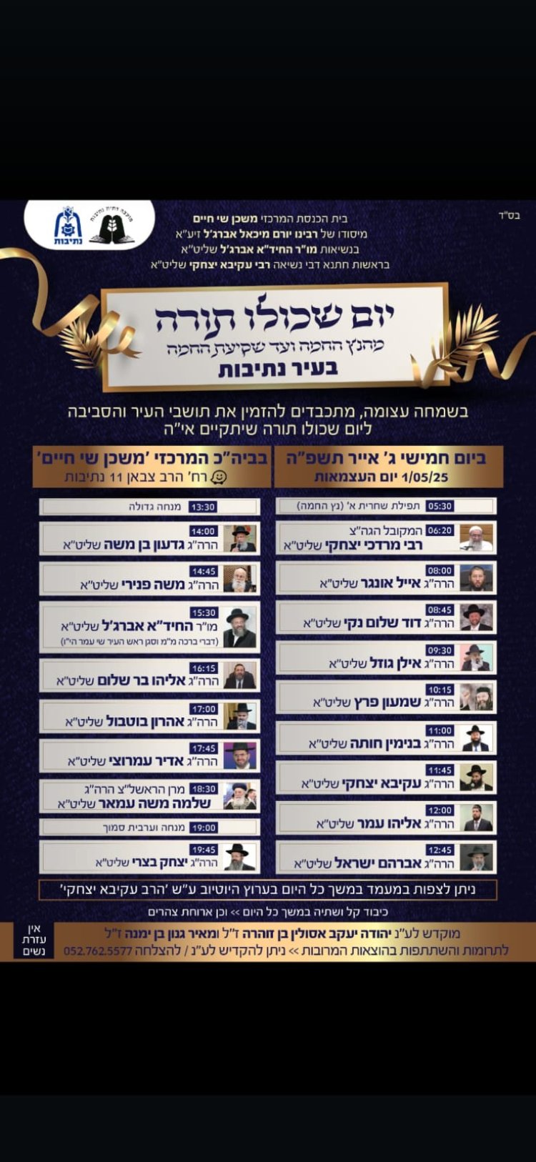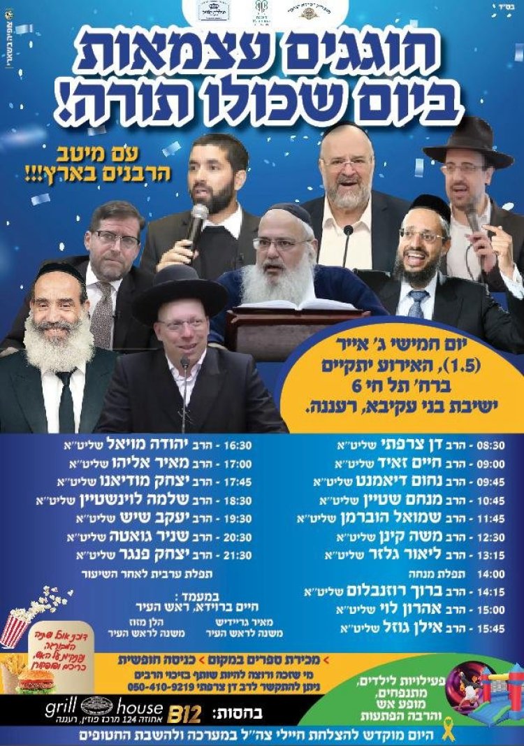 גם בעיר שלכם מתקיים יום שכולו תורה? שלחו ל davidh@htv.co.il צילום של מודעת הפרסום, ונצרף אותה בשמחה.