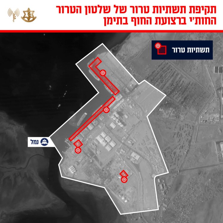 צה״ל פרסם היום תיעודים חדשים מהתקיפה אתמול בתימן. כ-20 מטוסי קרב ישראליים תקפו עשרות מטרות של החות'ים בנמל הימי חודיידה ובסביבתו בתימן, מרחק של כ-2,000 ק"מ משטח ישראל. התקיפות התמקדו גם במפעל נוסף במרחב, במתווה דומה לתקיפות קודמות שביצע צה"ל בתימן. התקיפה בוצעה בתיאום עם ארצות הברית, וזאת לאחר טיל חות'י שהתפוצץ בתוך נתב"ג.