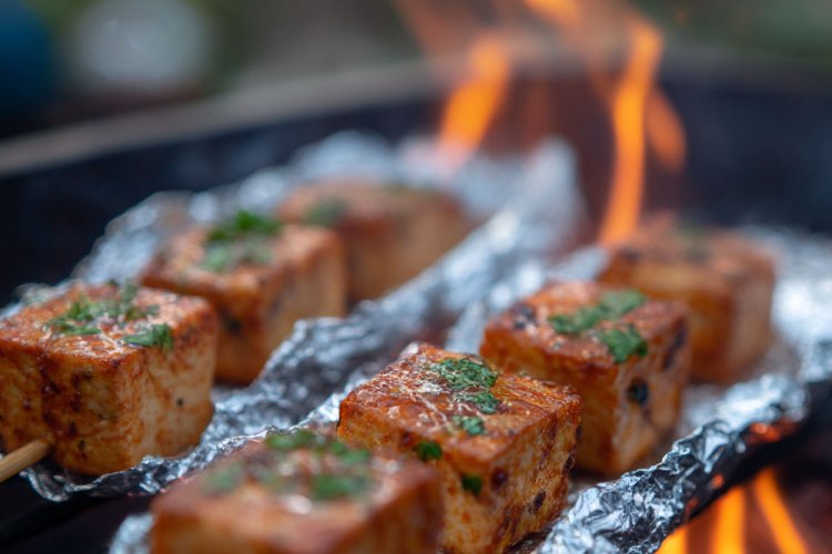 קוביות טופו מושרות בסילאן, סויה, שום ופפריקה, (מכינים מראש בקופסה, כן?!), עוטפים בנייר כסף, זורקים לגחלים או שמים על שיפוד – והטופו מקבל קראסט עדין וטעם מעושן. אפילו הילדים אוהבים.
