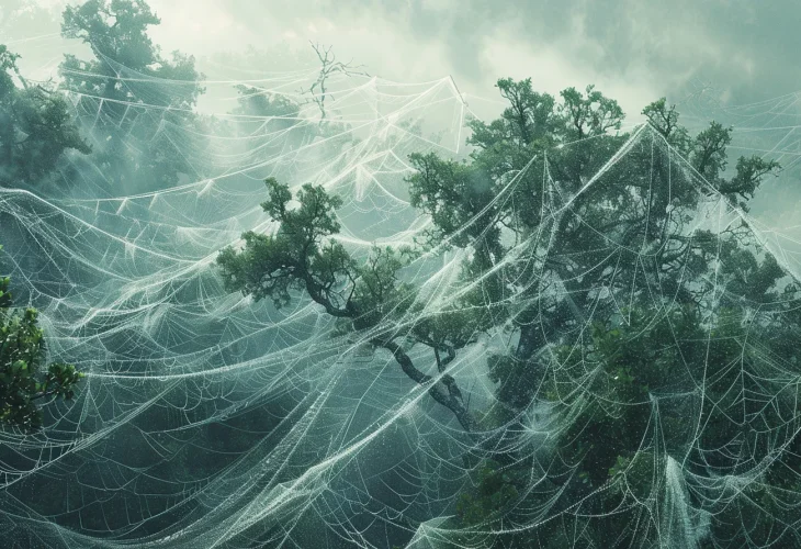 ואז התושבים שמו לב לדבר מופלא: העצים שסביב למקווי המים העצומים שיצרו השיטפונות, נראו פתאום כמו הממתק "שערות סבתא", כאילו מישהו ליפף אותם בצמר גפן. במחשבה ראשונה היו בטוחים הפקיסטניים שמדובר בשד מפלצתי שקשור לאסונות, או באיזה כישוף. אבל חוקרים שהיו באזור גילו דבר מדהים: העכבישים, שחיו עד אותו הזמן במפוזר על פני השטח המיוער, נמלטו במיליוניהם ומיליארדיהם ממי השיטפונות העולים ומקפחים את "פרנסתם", חרקים וזבובונים. הם התייצבו על העצים שמסביב לאגמים החדשים, ושם טוו את קוריהם. ריכוז כה גדול של עכבישים בשטח הרבה יותר מצומצם, הביא אותם לשיא של טוויית קורים. העצים היו עטופים בקורים.