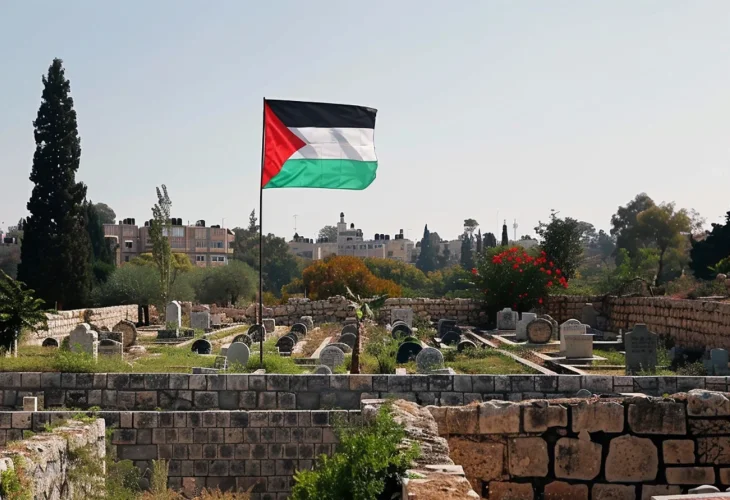 סערה באנגליה: דגל פלסטין מתנוסס מול בית קברות יהודי – והעירייה שותקת