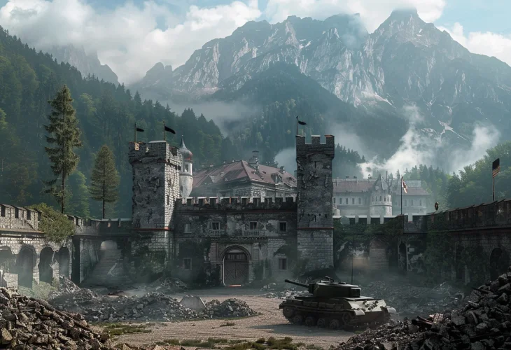 בהמשך הדרך, הם נתקלו ביחידת אס אס שניסתה לחסום את דרכם, אך הם הביסו אותה, והצליחו להגיע אל הטירה. לי הציב את הטנק בכניסה לטירה, והכוחות האמריקאיים והגרמניים יחד עם האסירים הצרפתיים תפסו עמדות ברחבי הטירה.