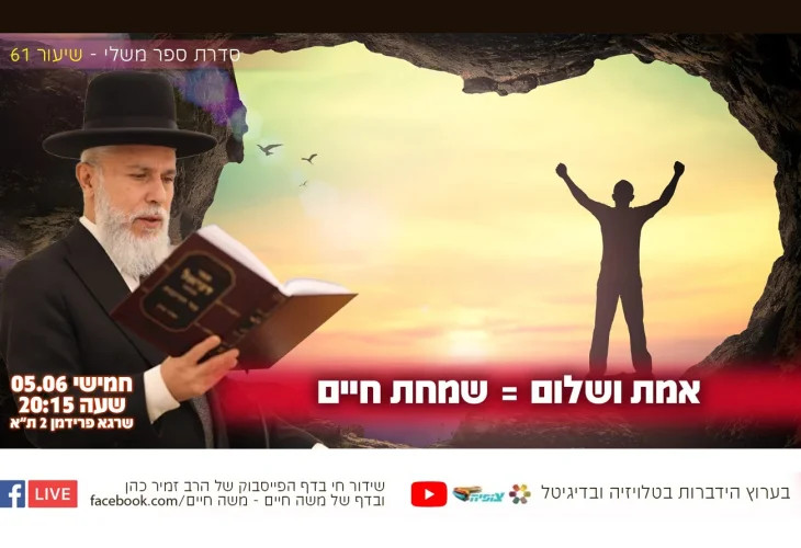אמת ושלום = שמחת חיים: השיעור השבועי של הרב זמיר כהן