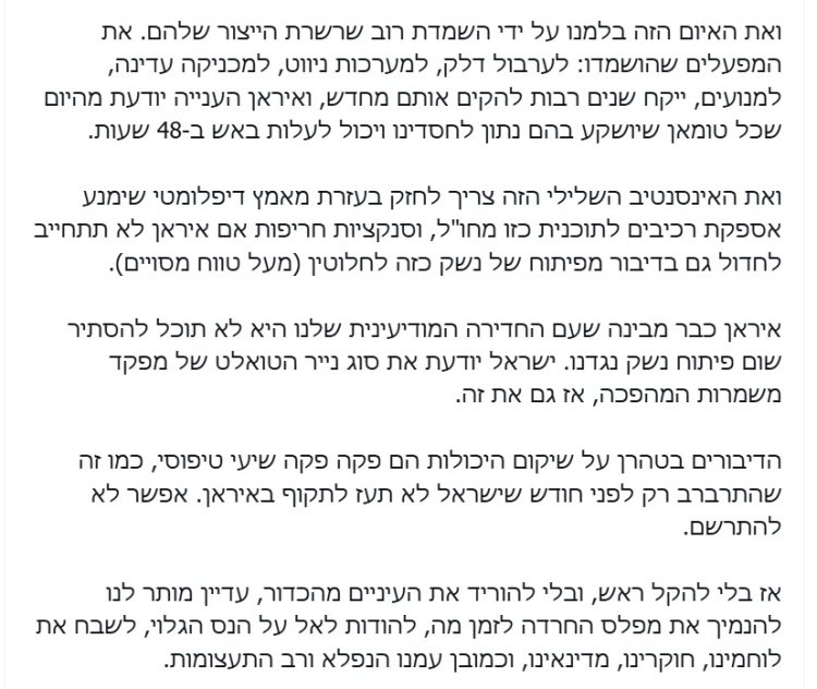 הפוסט היומי: "הדיבורים בטהרן על שיקום היכולות - פקה פקה שיעי טיפוסי"