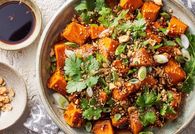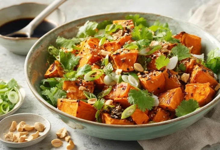 קוביות בטטה צלויות, רוטב אסייתי עדין, ירוקים טריים וקריספיות של אגוזים: זה הסלט שישדרג כל שולחן, בין אם זו ארוחה יומיומית או אירוח חגיגי