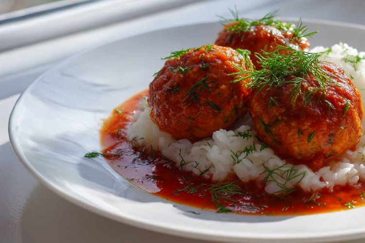 לאחר 10 דקות מוסיפים את הקציצות האפויות ומבשלים 10 דקות נוספות, מגישים חם עם אורז לבן או פתיתים.