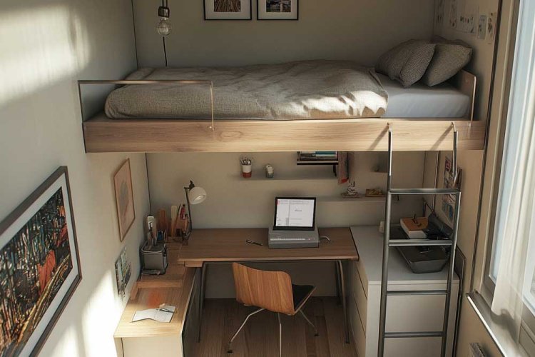 אם החלטתם כן לרכוש רהיטים חדשים לצורך העניין, חפשו מיטות גלריה הבנויות לגובה ומאפשרות מיקום פינת כתיבה מתחת למיטה העליונה. בחדר קטן בו כל המיטות נמצאות בגובה, יתפנה שטח מרכזי בחדר לטובת פינת כתיבה, מדפי אחסון ומקומות משחק. החיסרון: לא זול, אם כי אפשר למצוא מיטות גלריה נהדרות באתרי יד-2. כיום ניתן למצוא מיטות שמכילות גם ארון צדדי, מגירות ופינת כתיבה, הכל מגיע יחד במבנה המיטה.