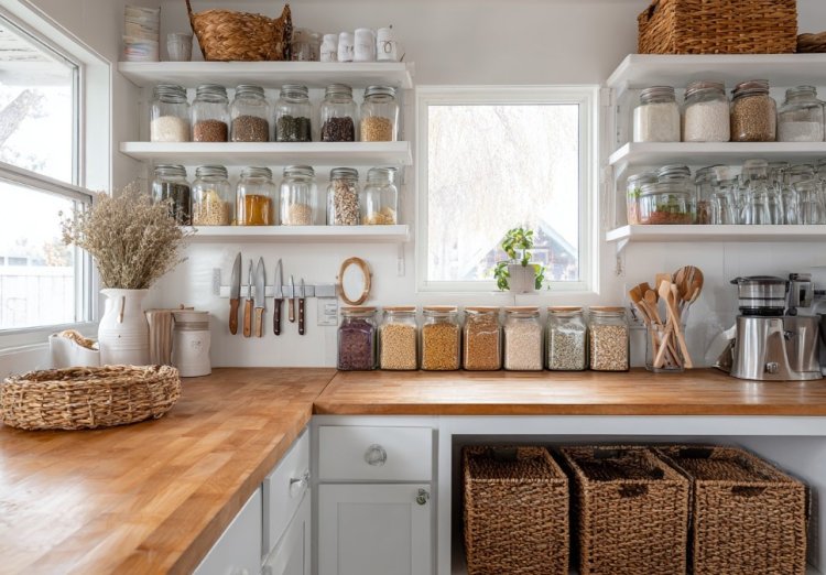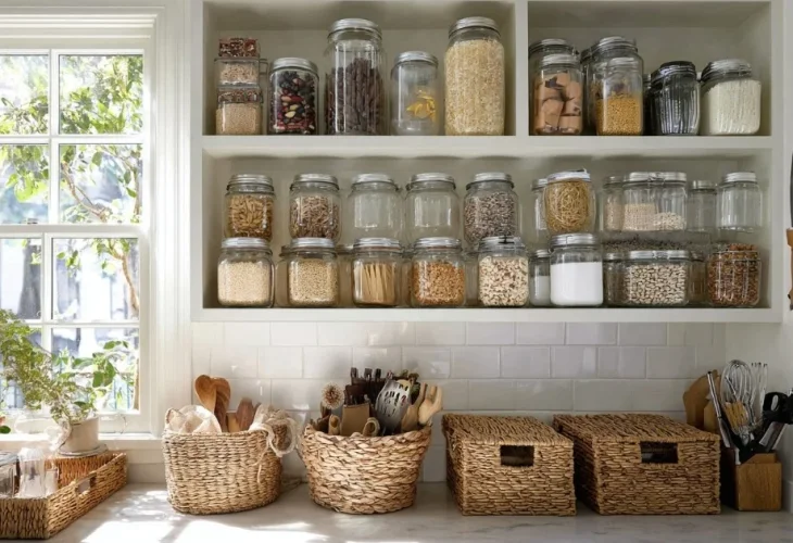 קמח, אורז, עדשים ותבלינים, כשהכול בצנצנות שקופות עם מדבקות, אתם גם רואים מה יש (ומה חסר) וגם נמנעים מבלגן בארונות.