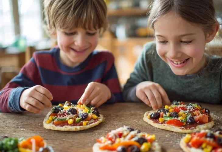 בסיס הפיצה הוא פיתה הוא טורטייה, שמחליפים את הבצק המסובך, ועליו רוטב עגבניות טבעי קנוי או ביתי. לאחר שהנחתם את הירקות על הבסיס שלכם, תוכלו להוסיף גבינה צהובה או מוצרלה, ולאפות יחד. מבטיחים לכם שברגע שהילדים מתנסים בתהליך כולו, הם מחכים בציפייה לאכול מהפיצה המקושטת שלהם וכך למעשה הרווחתם כפול: גם את ההנאה שלהם מעצם ההכנה, וגם את הירקות ש'הכנסתם' להם בדלת האחורית. פתאום פלפל אדום או עגבניה שהילד לא כל כך אהב מרגיש כמו תוספת מעניינת ומתוקה על הפיצה ולא כמו עונש בריאותי.