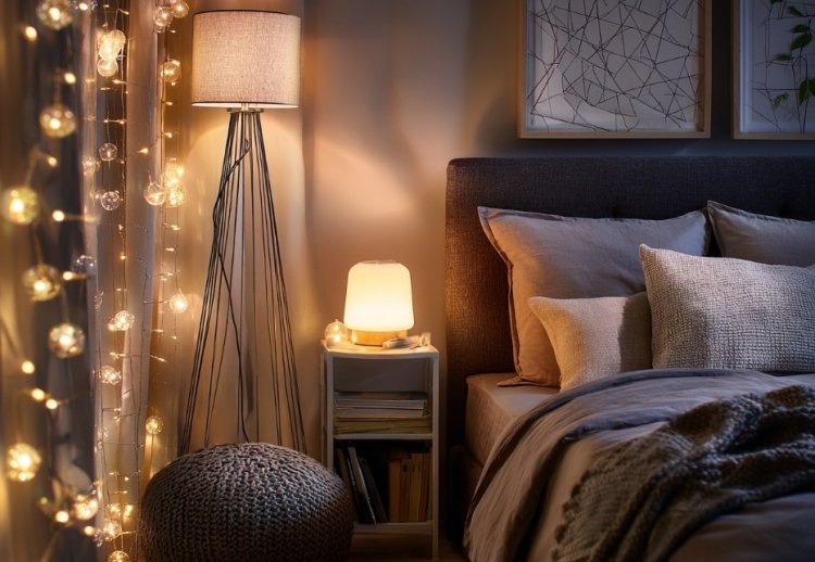 מה שהולך היום מבחינת תאורה הוא עיקרון ה'כמה שיותר'. לא מנורה מרכזית אחת, אלא כמה מקורות אור חמים: מנורת צד, מנורת רצפה, ואפילו שרשרת עדינה של אורות רכים.