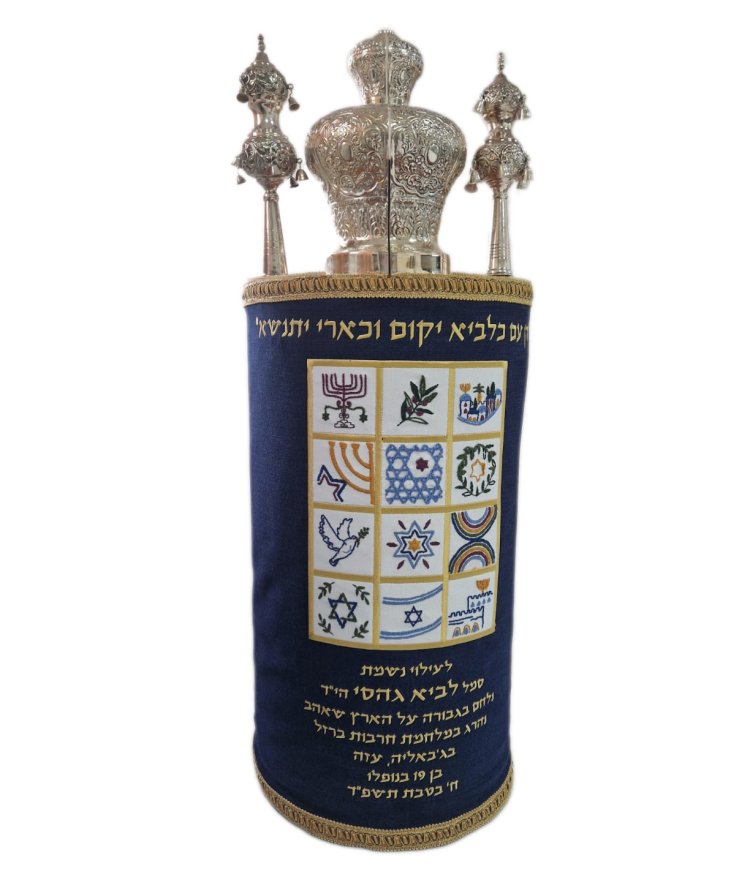 "גם מאחורי המעילים שרקמנו לספרי התורה יש סיפור מרתק, שכן הרקמות שעליהם יוצרו על ידי 4000 נשים מכל רחבי העולם שהתגייסו יחד כדי לרקום את המעילים. בצד הקדמי של כל מעיל אנו רוקמים את שמו של החלל, שלעילוי נשמתו נתרם ספר התורה, ומן הצד השני רוקמים את שמות האנשים שספר התורה נתרם בעבר לעילוי נשמתם, וכך זוכים ליצור לכולם המשכיות".