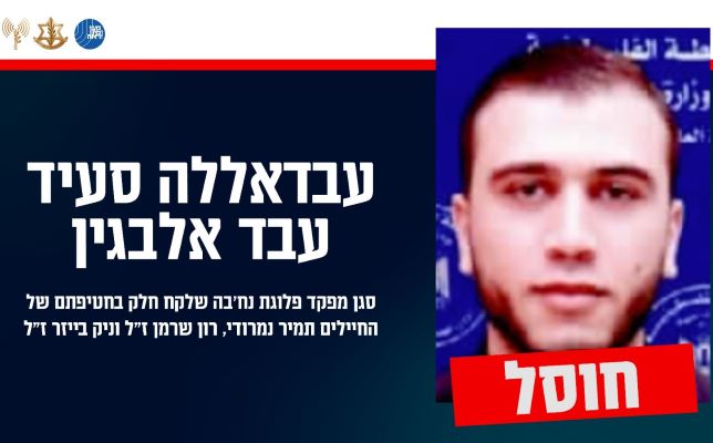 צה"ל ושב"כ חיסלו בצפון הרצועה את המחבל עבדאללה סעיד עבד אלבגין, ששימש כסגן מפקד פלוגת נוח'בה. לקח חלק בשביעי באוקטובר בפשיטה לבסיס מת"ק ארז, והשתתף בחטיפתם של החיילים ניק בייזר ורון שרמן הי"ד ושל תמיר נמרודי המוחזק בשבי חמאס