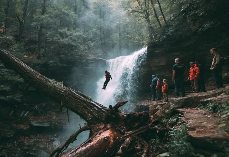 מעידה קטנה הובילה לנפילה מסוכנת מגובה של כ־12 מטרים: ענף עץ מת ספג את נפילתו של צעיר בן 19 מהמפל, והוא ניצל בנס
