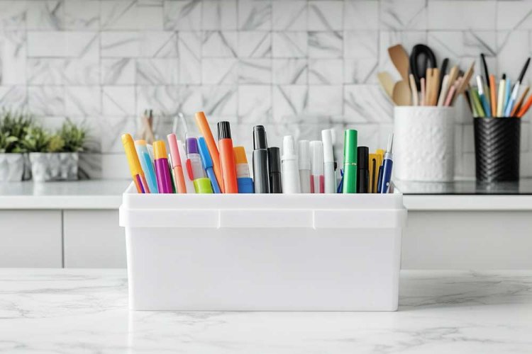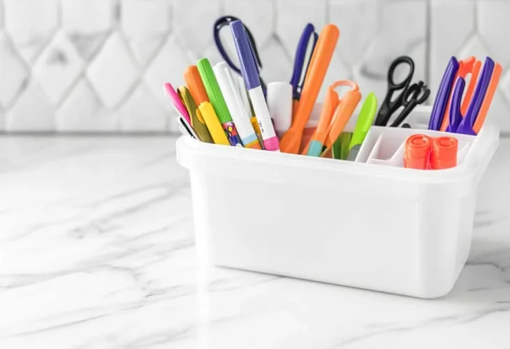 גם אם אין לילדים פינת כתיבה בחדר הילדים, חשוב לייצר פינה מוגדרת: זה יכול כמובן להיות שולחן בפינת האוכל, אותו נפנה מחפצים מיותרים. בנוסף, חשוב להכין קופסת כלי כתיבה מסודרת שמיועדת בדיוק לזה. הנחת הקופסה על שולחן מסודר ונקי יוצרת תחושת "פינת שעורי בית" ועוזרת לפוקוס וריכוז. היתרון: הפינה מעודדת הכנת שעורי בית. החיסרון: צריך להזכיר לילדים להחזיר את הקופסה למקום.