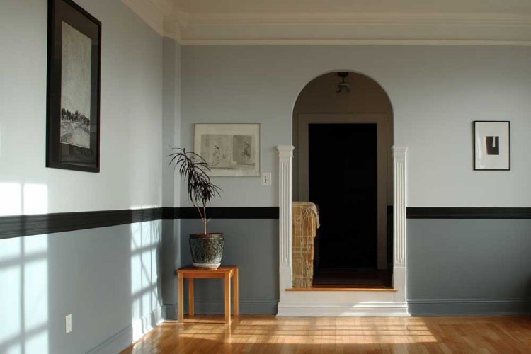 - אפשרות נוספת: צבע כהה בחצי התחתון של הקיר ולבן בחלק העליון – פתרון עיצובי שמדגיש גובה.