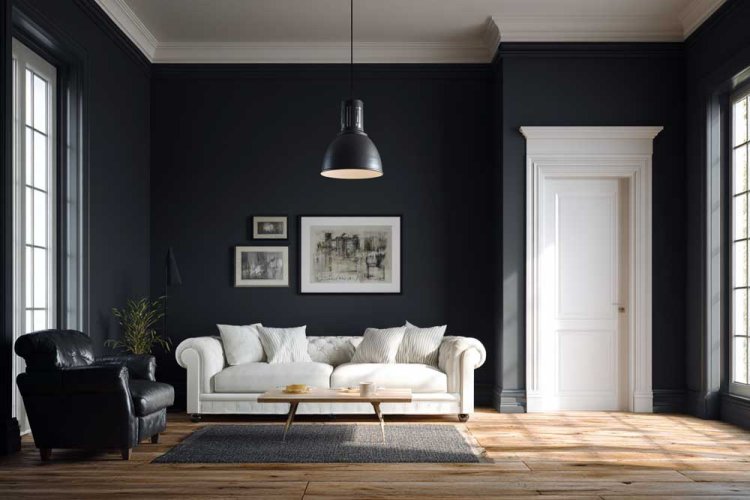 - קיר אחד כהה מול שלושה קירות בהירים ייצור מוקד כוח אלגנטי.