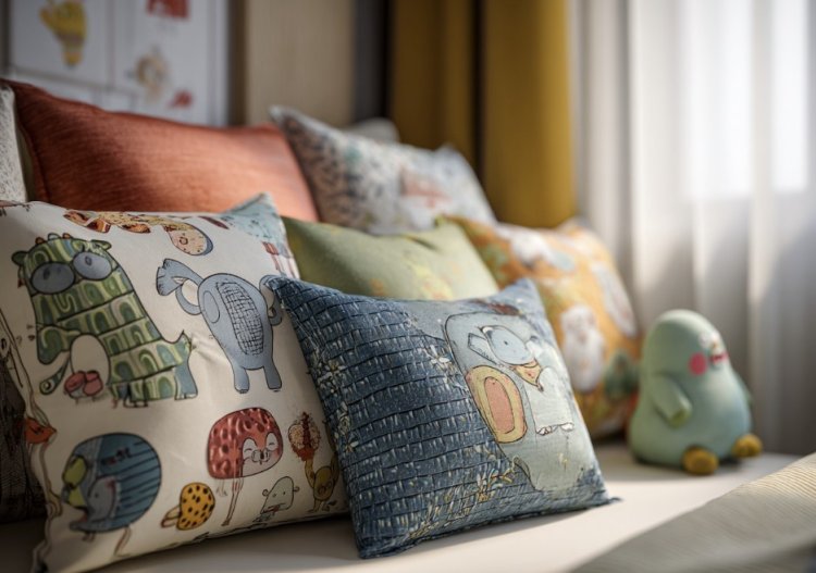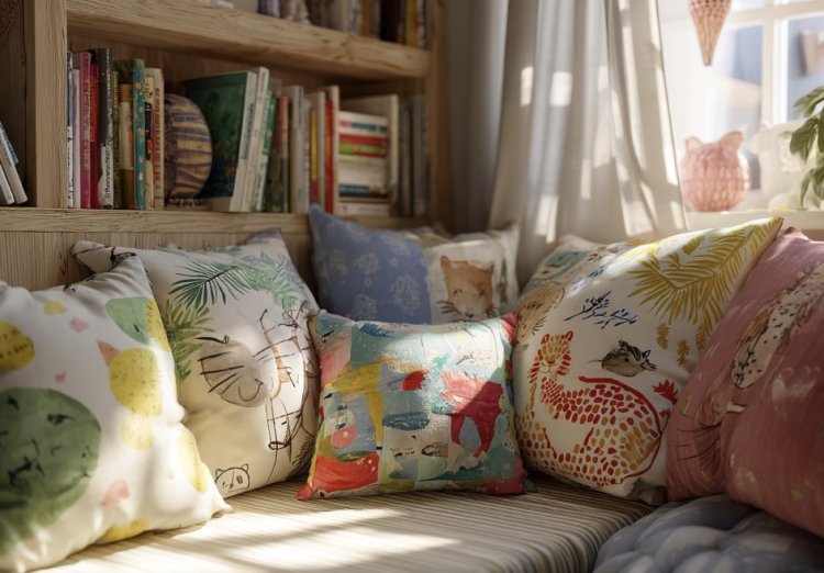 כריות בצבעים עליזים או בהדפסים מצחיקים מוסיפות צבע ושובבות לפינת הקריאה או המיטה.