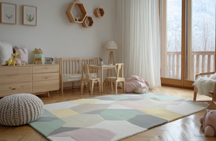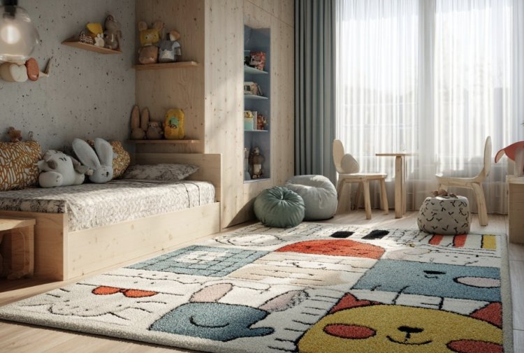 ילדים אוהבים שטיחים, ושטיח רך עם דוגמאות גיאומטריות או ציורי חיות - מוסיף חמימות לחדר ויוצר אזור משחק נעים.