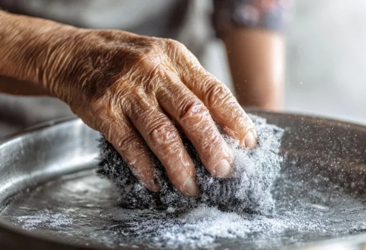 כשסיר נשרף או התמלא בלכלוך שלא יורד, הסבתות לא פנו לסבון כימי חריף, אלא דווקא למלח גס. הן היו מפזרות שכבה נדיבה של מלח בתוך הסיר, מוסיפות מעט שמן ומשפשפות בעדינות. גבישי המלח עבדו כמו "נייר זכוכית" טבעי, והיו מספיק חזקים להוריד את הלכלוך, אבל לא לפגוע בסיר עצמו. כך סירי הברזל והנירוסטה נשמרו שנים רבות.