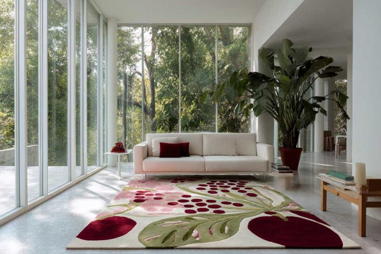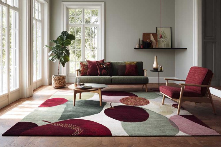 9. אם דוגמת רימונים ותפוחים על כריות או בקערות פחות מדברת אליכם - שטיח גדול בגוונים דומים יעשה את העבודה.
