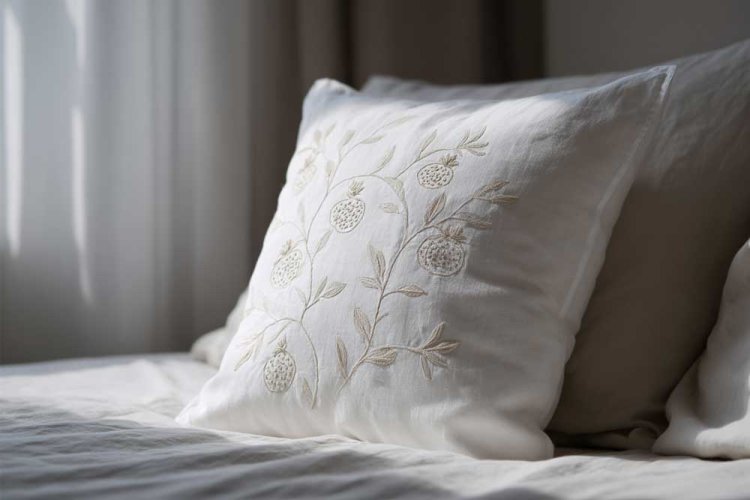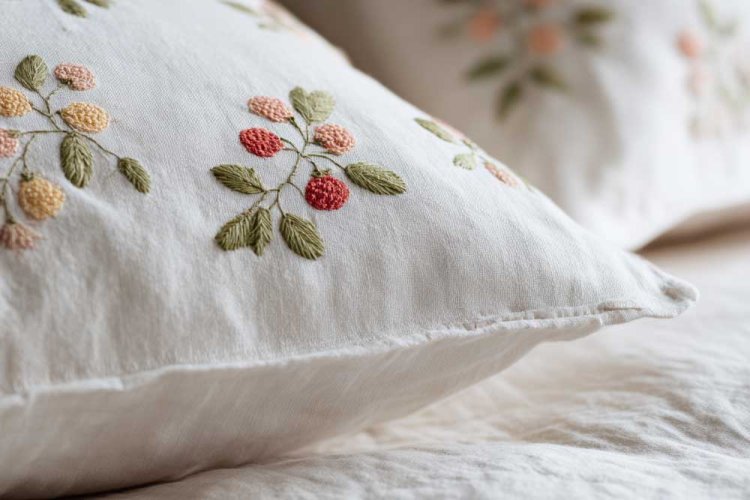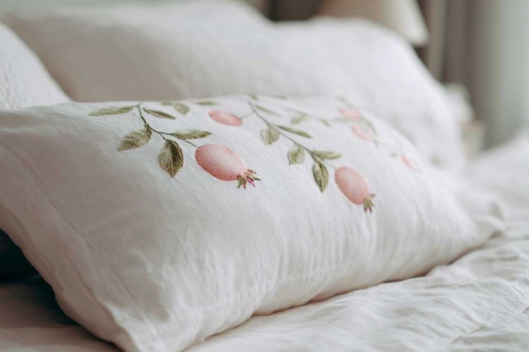 12. רקמה עדינה של רימונים על כריות.