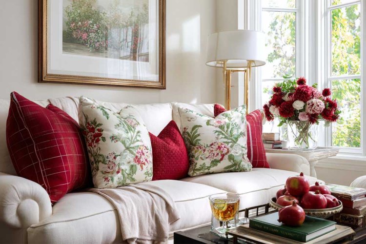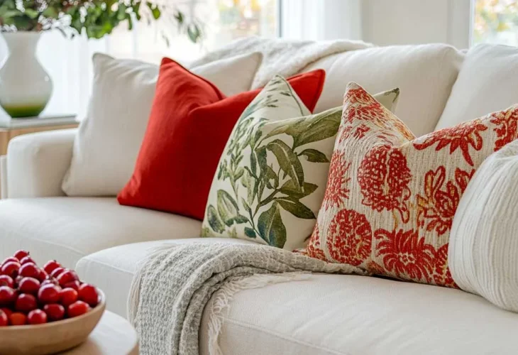 - כריות נוי בצבעי ראש השנה – שילוב של אדום, ירוק או לבן.