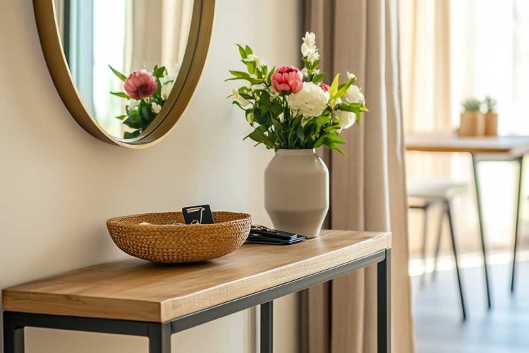 - מתלה מעוצב למפתחות או סלסלה קטנה לדואר - גם פרקטי וגם מסודר.