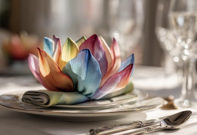 קיפול מעט מתקדם יותר, שמעניק לשולחן מראה מרהיב. המפית נפתחת כמו פרח עדין, וכל סועד מרגיש שקיבל יצירה אישית. מתאים במיוחד למפיות בד רכות.