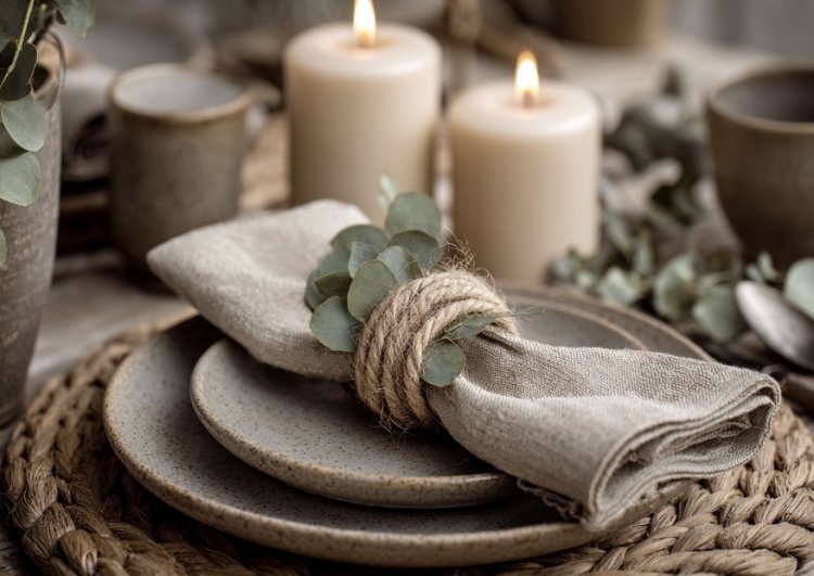 עוטפים את המפית סביב סכו"ם וקושרים אותה בחוט יוטה, סרט סאטן או רצועת תחרה. הפתרון הזה מהיר, קל ומוסיף טאץ’ כפרי או אלגנטי, תלוי בבחירה של החומר.