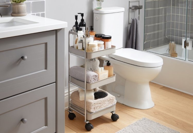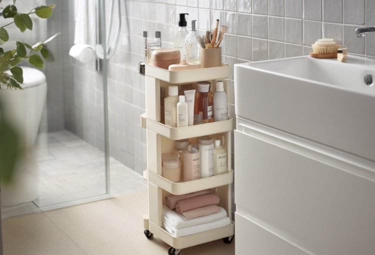 נכנסת בקלות בין הכיור לאסלה או לצד מכונת הכביסה, מאפשרת לנייד מוצרי טיפוח וחוסכת מקום יקר.