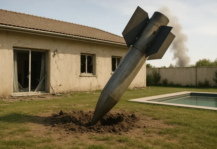 בחצר האחורית, ממש ליד הבריכה, נח טיל ענק. מפלצת מתכת באורך עשרה מטרים לפחות. הוא שקע קצת באדמה, כאילו ניסה לנעוץ בה את שיניו, אבל נעצר. לא התפוצץ.